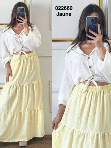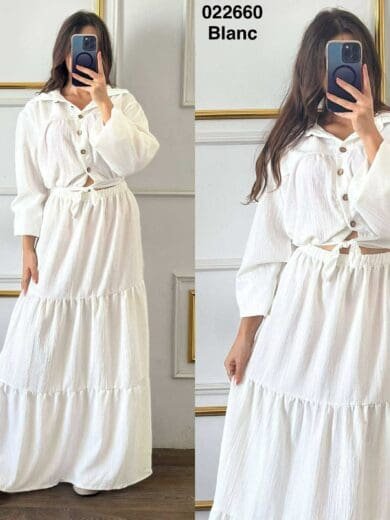 Fabriquée avec des matériaux de première qualité, cette chemise garantit une durabilité exceptionnelle et un confort optimal. Le tissu doux et respirant épouse délicatement la peau, vous offrant une sensation de légèreté même lors de vos journées les plus chargées. Le foulard assorti est conçu avec le même soin, assurant une harmonie parfaite entre les éléments et une finition impeccable.