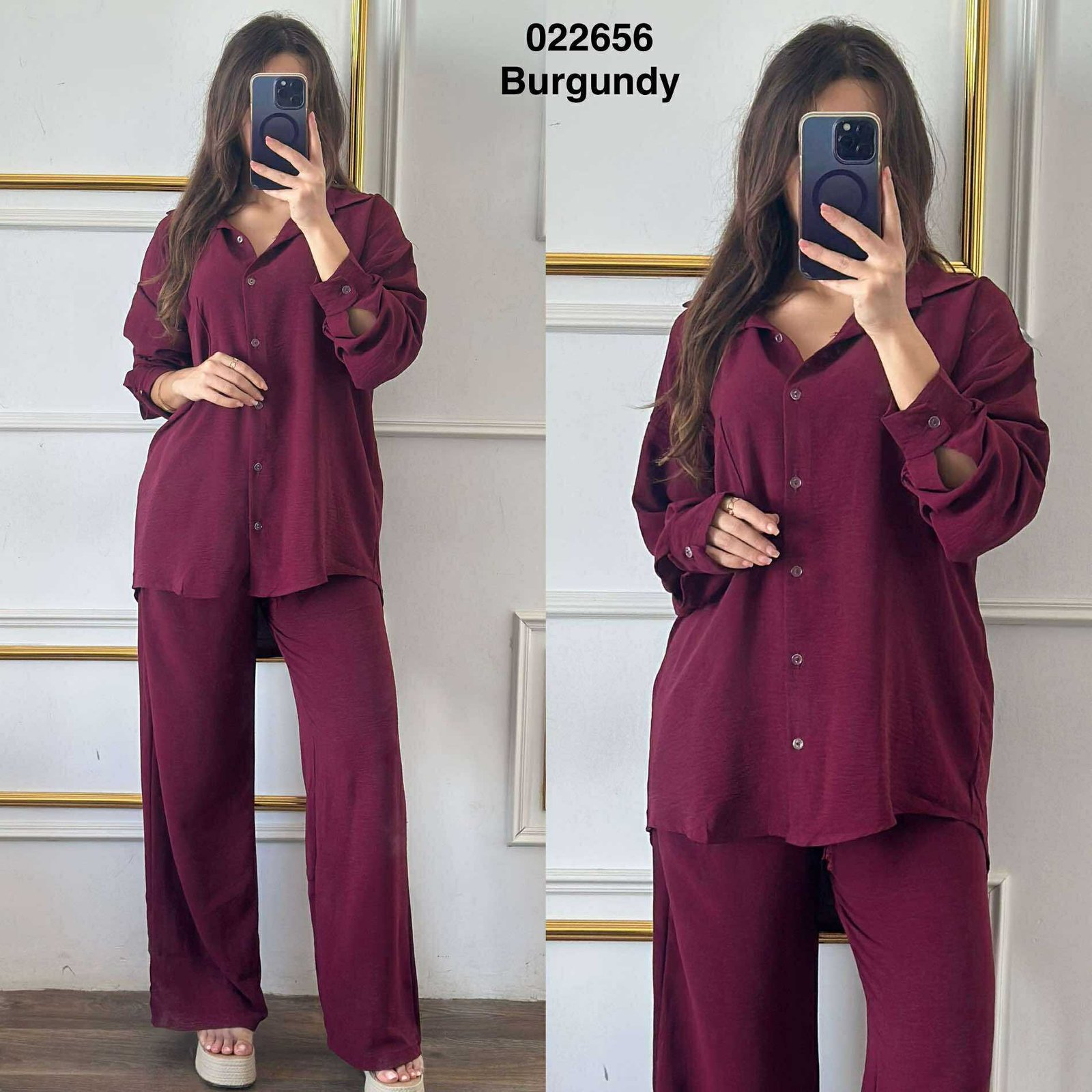 Ce 2 pièces chemise et pantalon pour femme se distingue également par sa grande praticité. Disponible dans des teintes neutres et élégantes, il s’associe facilement avec une variété d’accessoires et de chaussures pour créer différents looks. De plus, il est simple à entretenir : un lavage rapide suffit pour qu’il conserve toute sa fraîcheur et son éclat. C’est l’option idéale pour les femmes actives qui recherchent une tenue chic mais facile à gérer au quotidien.