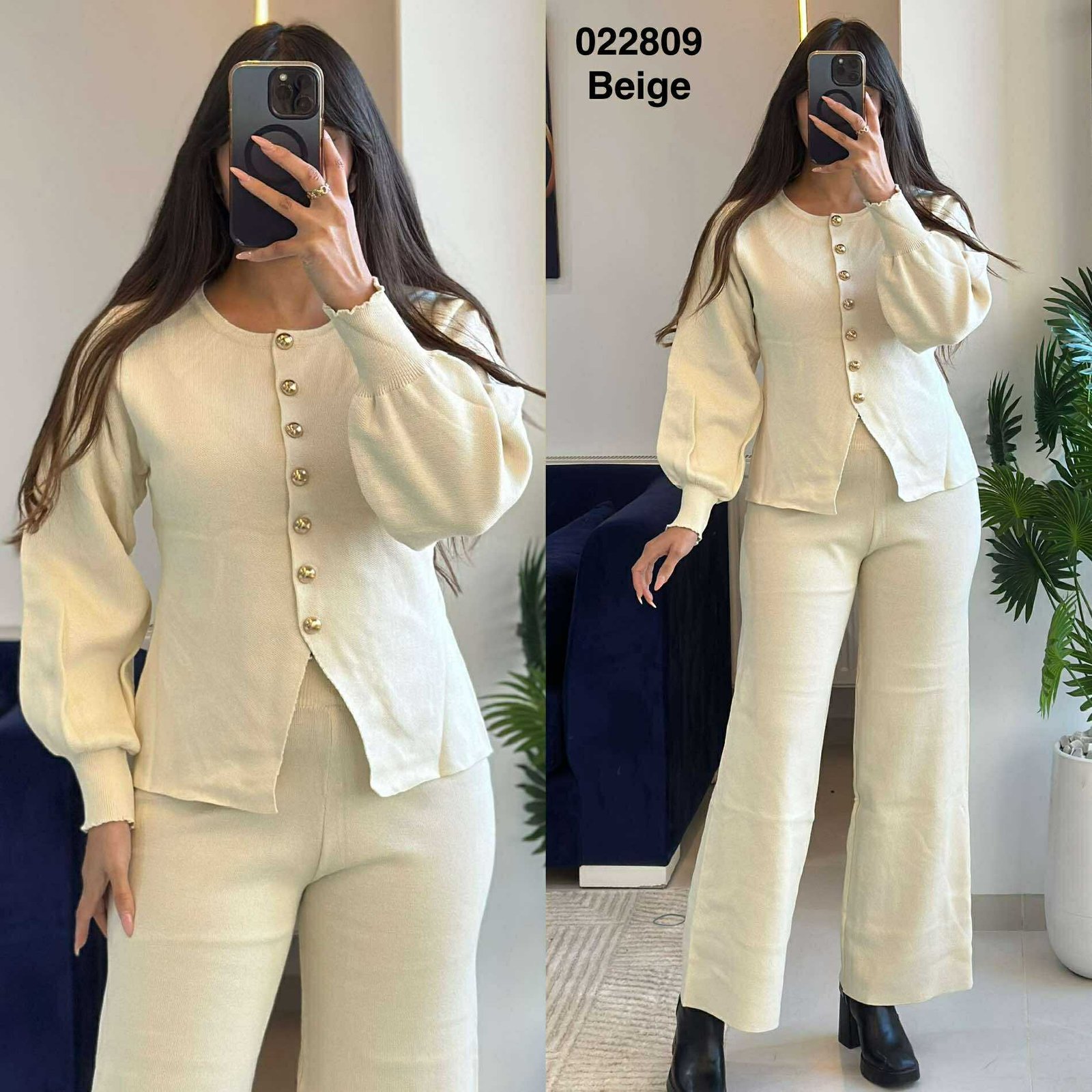 Ensemble laine 2ps gilet av boutons+pantalon8782