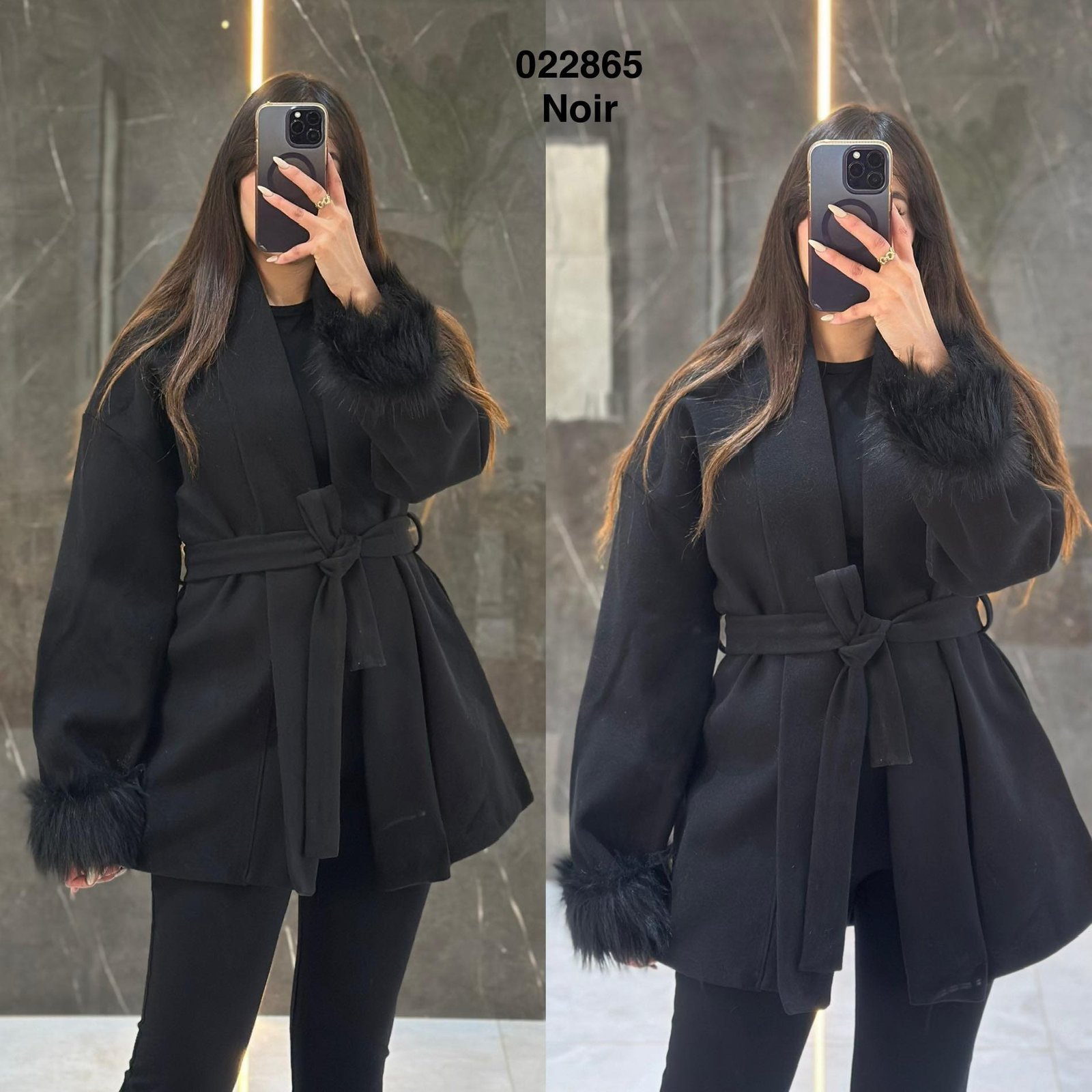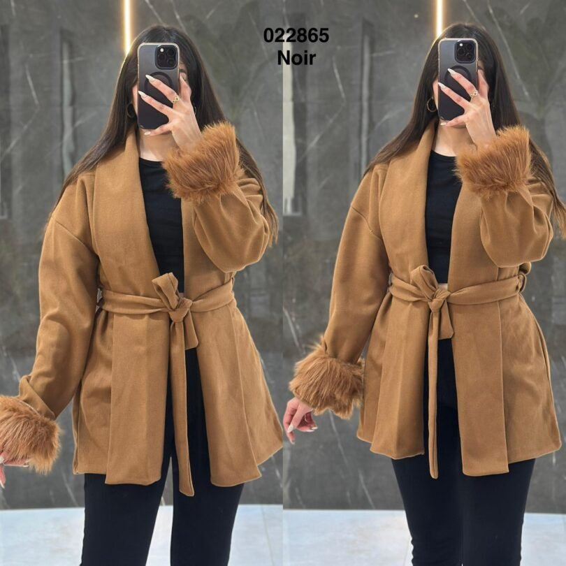 Gilet cachemire manche avec fourrure