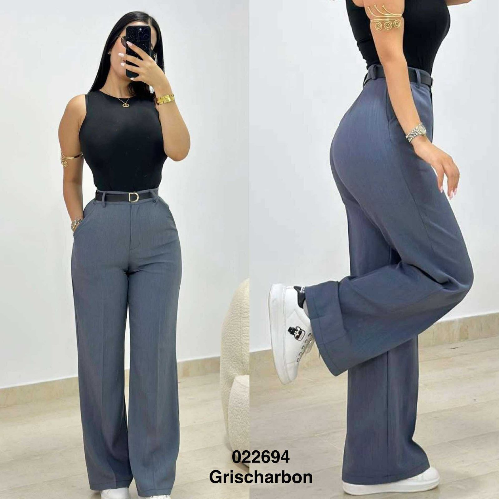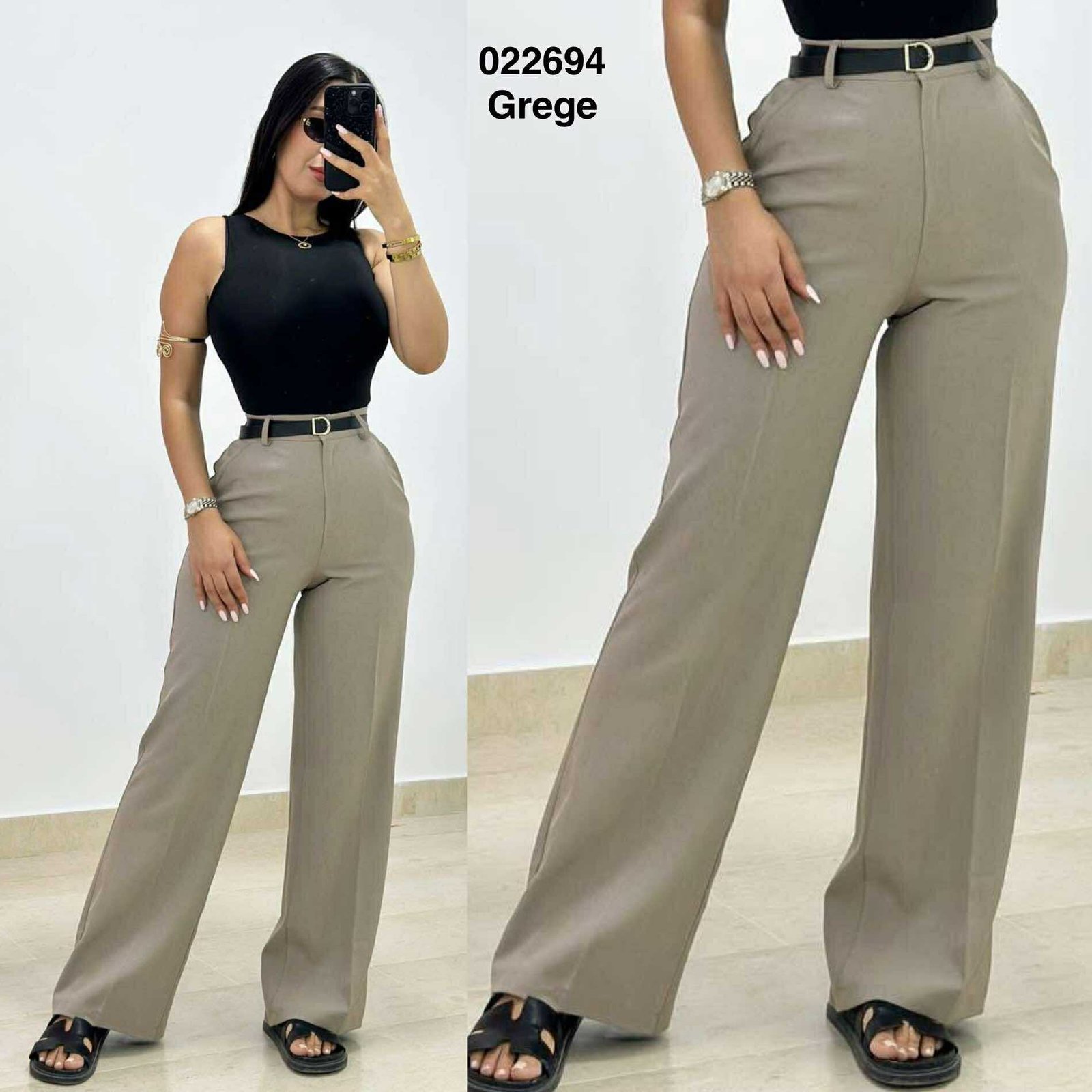 Pantalon large simple avec ceinturePantalon large simple avec ceinture
