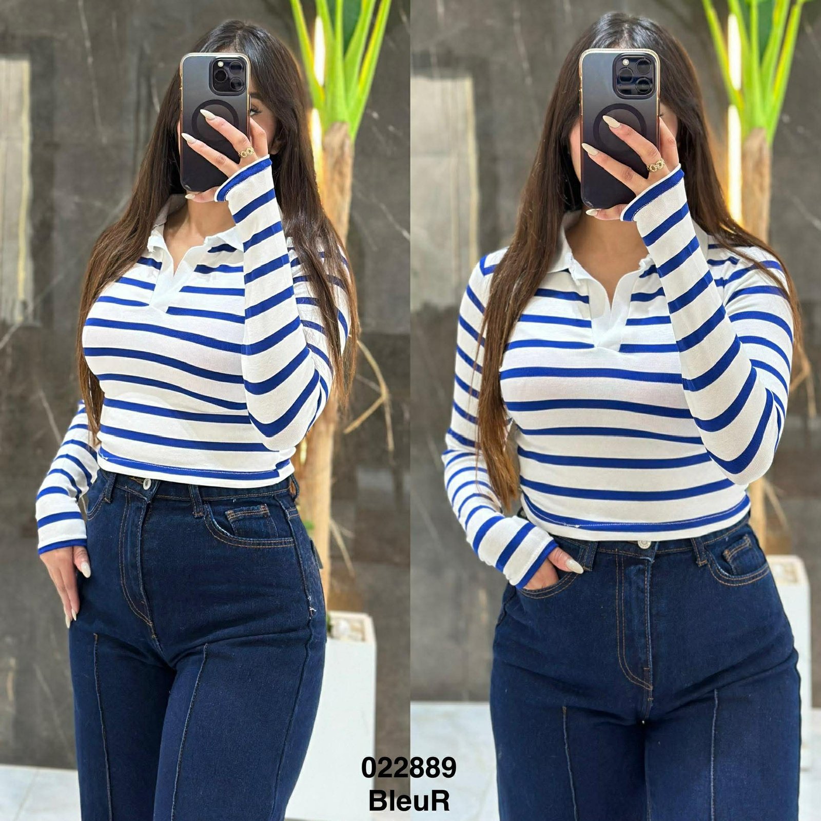 Pul courte raye col chemise c-2023Pul courte raye col chemise c-2023