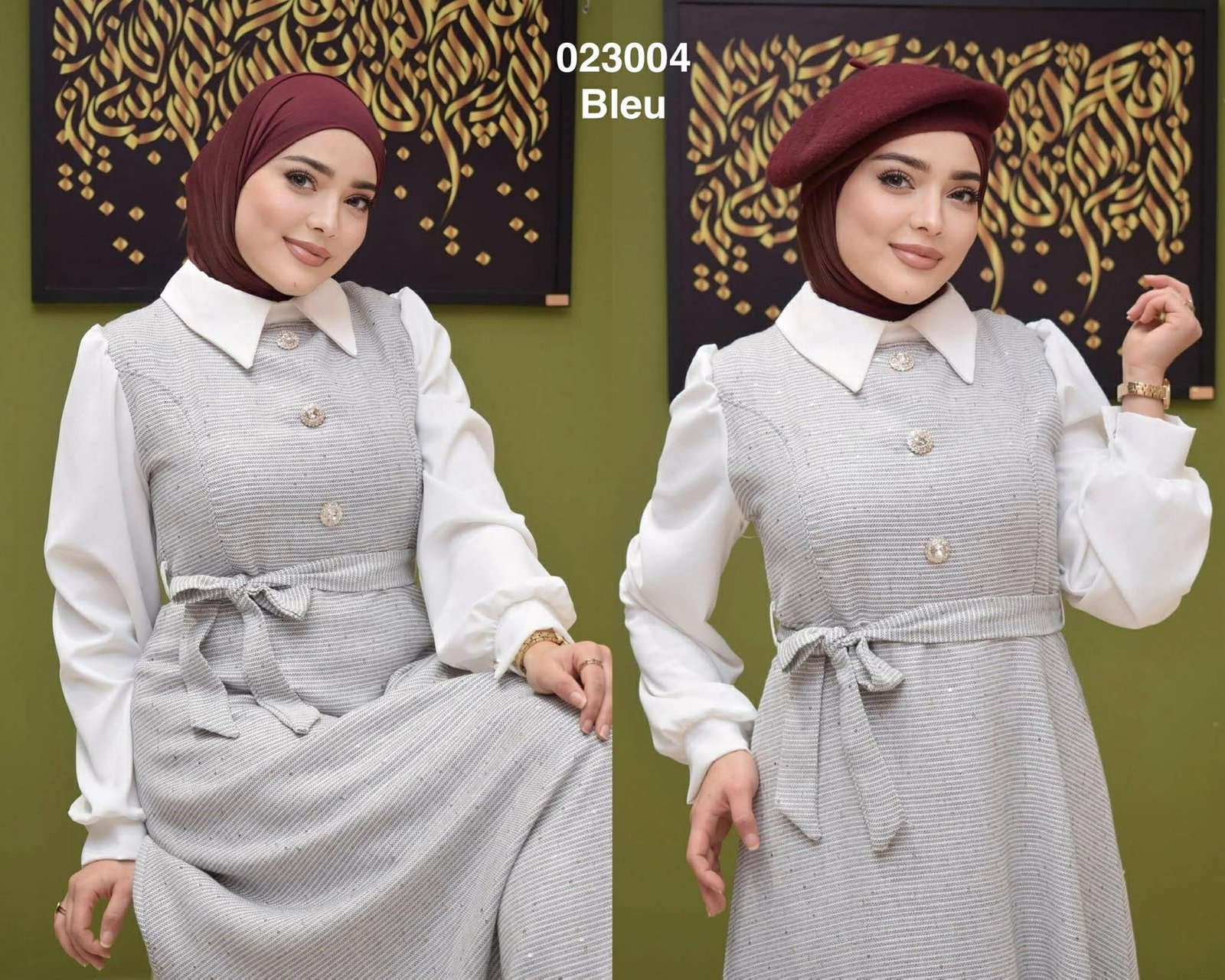 Robe long col chemise avec boutons