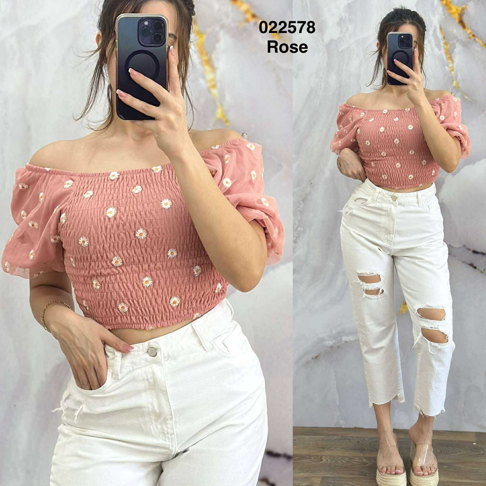Maintaining the beauty of your Top av Smock Fleurie F-988 Femme is simple. We recommend machine washing cold on a gentle cycle and hanging it to dry to preserve its vibrant colors and fabric quality. With the right care, will remain a favorite piece in your collection for years to come. Enjoy the perfect blend of style and durability with this floral top.