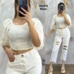 Step into a world of effortless elegance with the Top av Smock Fleurie F-988 Femme. This stunning floral top is designed to bring out your feminine side while offering unparalleled comfort. Crafted from lightweight, breathable fabric, it is perfect for any occasion, whether it’s a casual outing or a special event. The vibrant floral pattern is sure to turn heads, making it a must-have addition to your wardrobe.